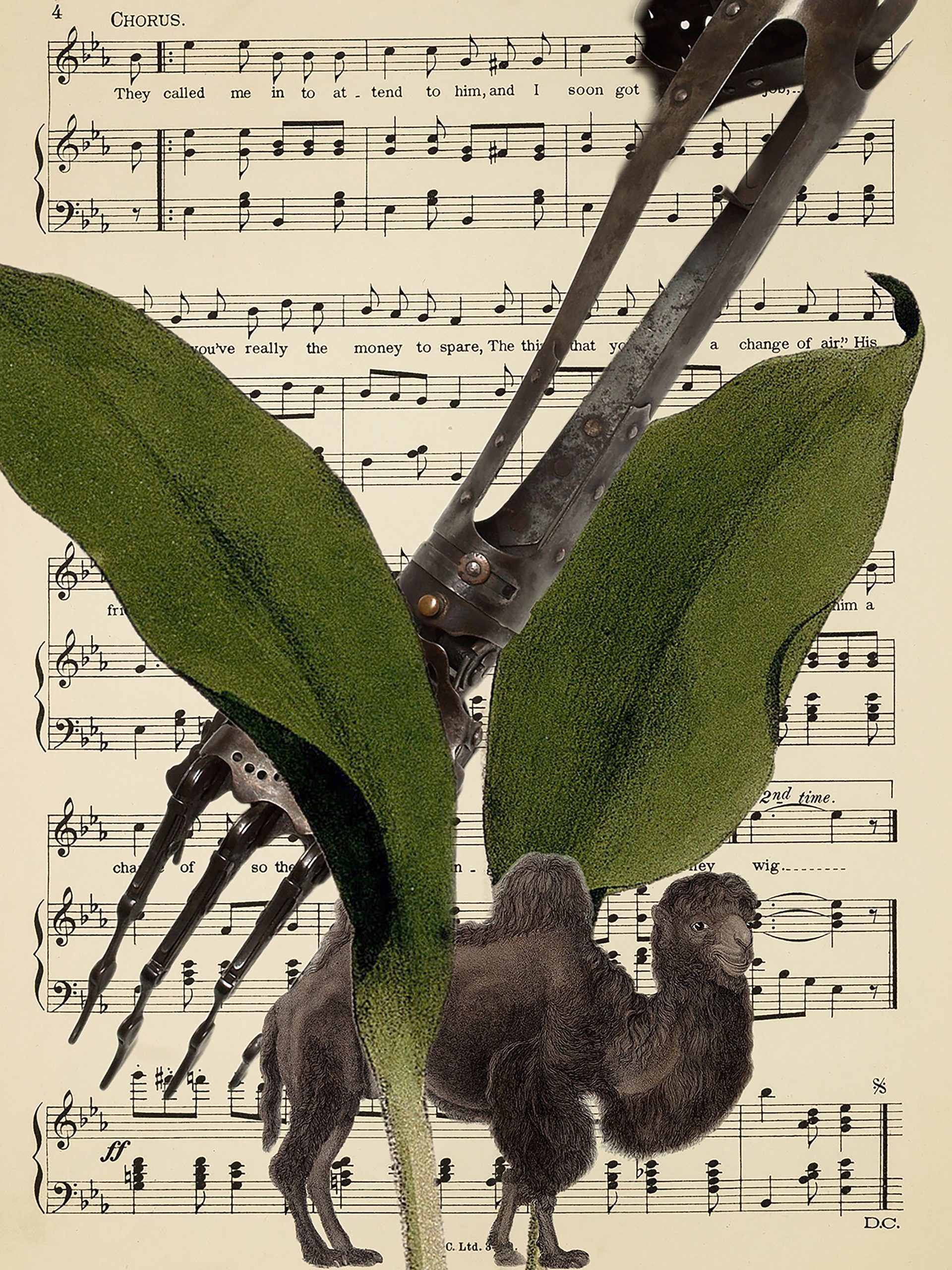 A collage merging music, nature, and Eastern imagery, symbolizing the intersection of cultures and elements.