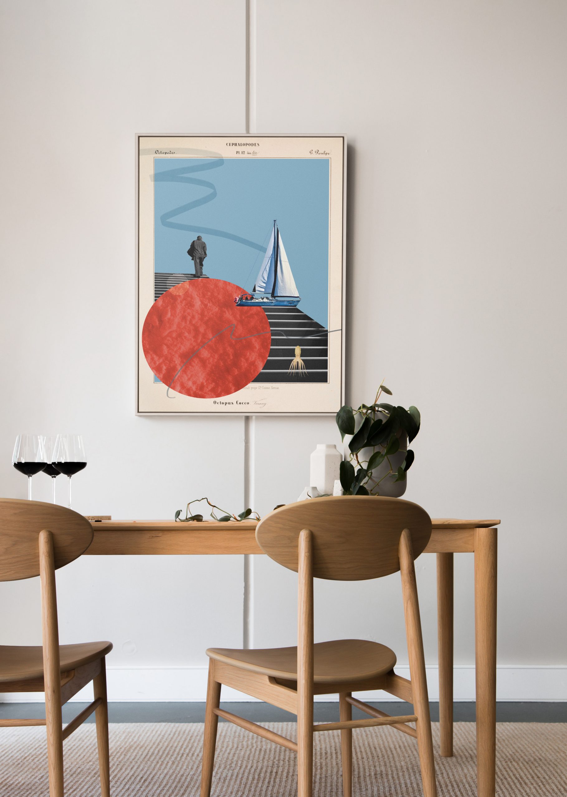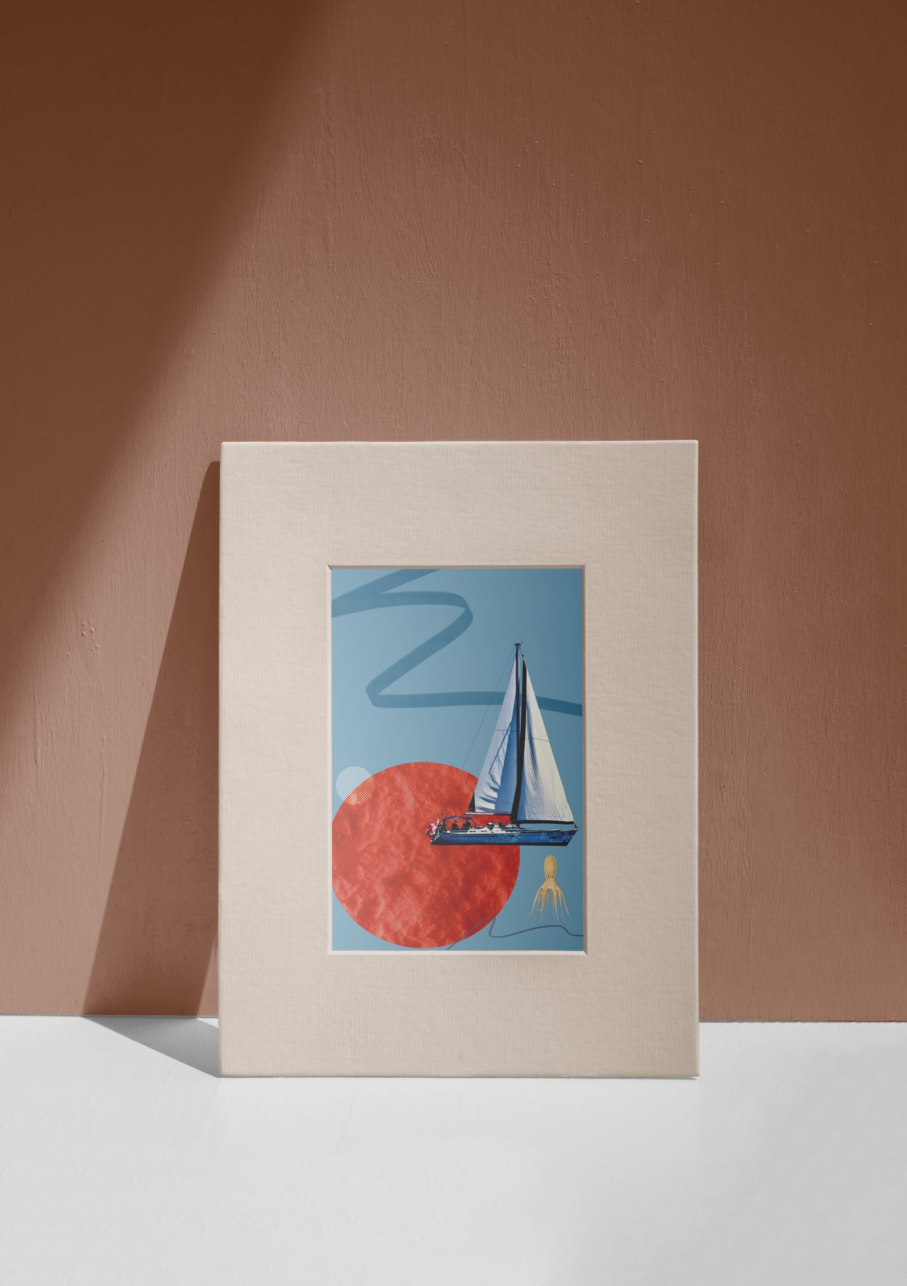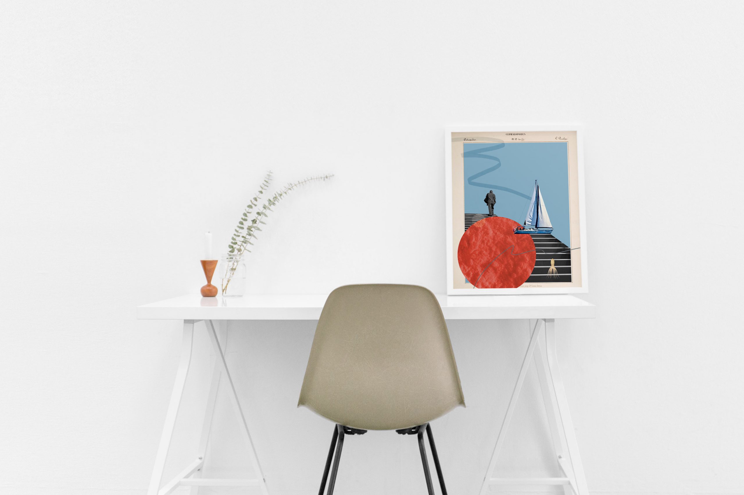 This striking geometric collage is a thought-provoking piece that explores the concept of the journey. Its